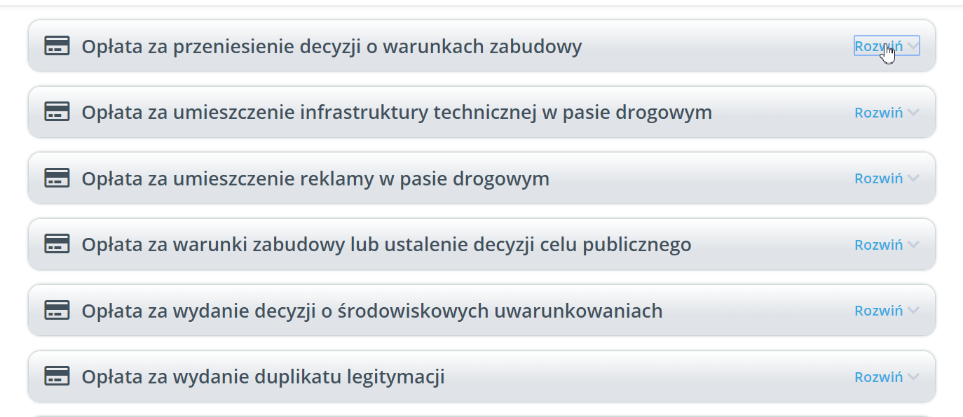 Następnie należy wybrać przycisk „Rozwiń” przy opłacie, która nas interesuje: