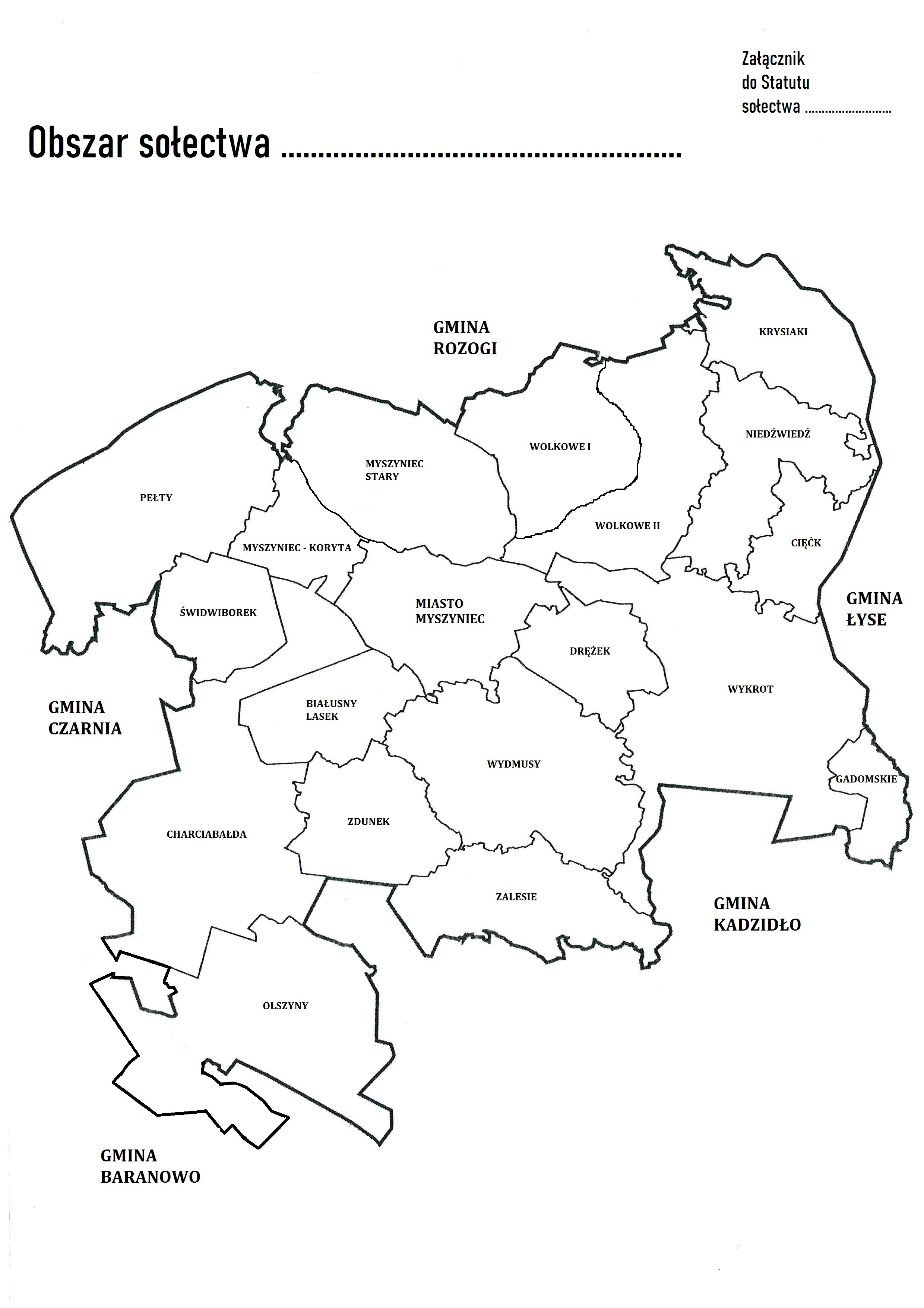 mieszkańców sołectw: Białusny Lasek, Charciabałda, Cięćk, Drężek, Gadomskie, Krysiaki, Myszyniec-Koryta, Myszyniec Stary, Niedźwiedź, Olszyny, Pełty, Świdwiborek, Wolkowe I, Wolkowe II, Wydmusy, Wykrot, Zalesie, Zdunek do konsultacji społecznych w sprawie projektów statutów sołectw.