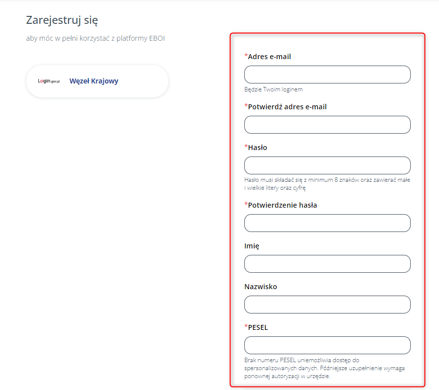 2. Zakładanie konta w systemie za pomocą Węzła Krajowego