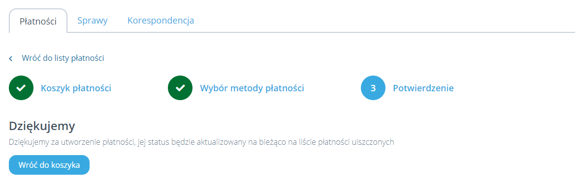 Dalej finalizujemy płatność zgodnie ze wskazówkami danego operatora płatności. Zakończona płatność jest potwierdzona stosownym komunikatem:
