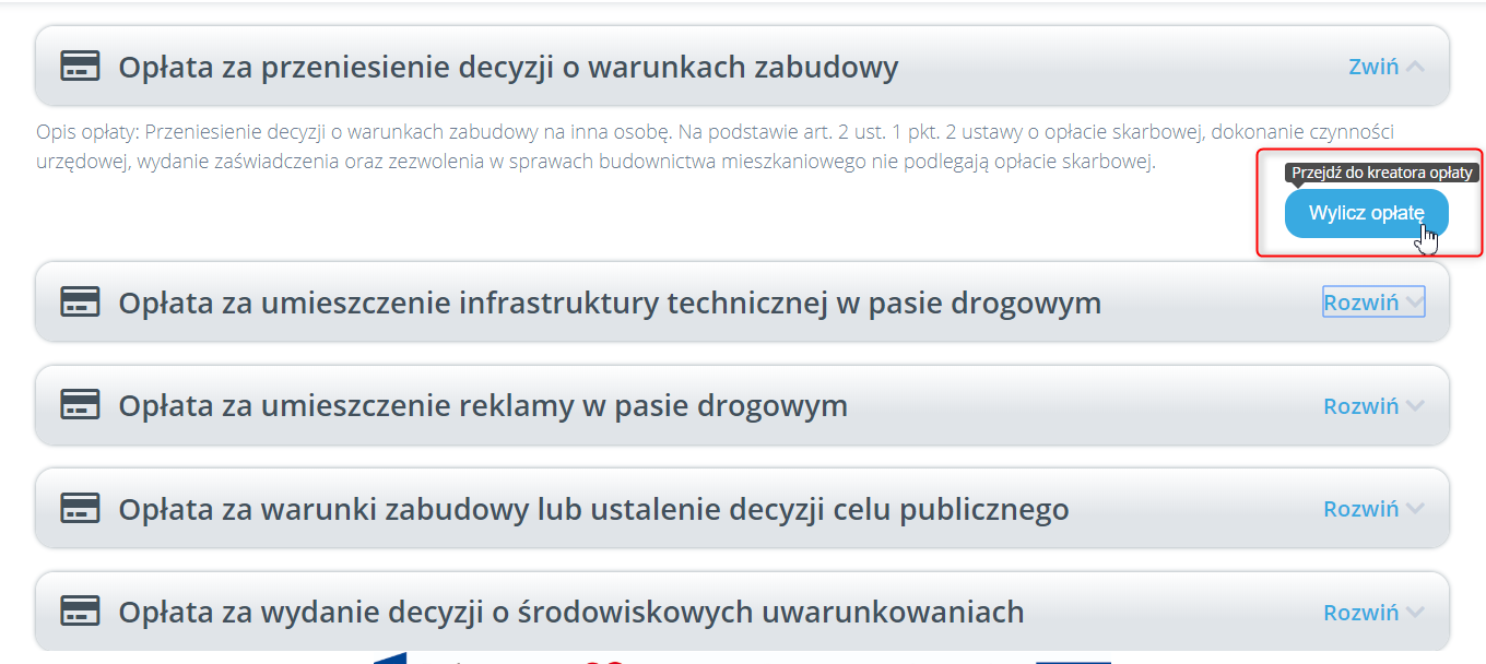 W kolejnym kroku wybieramy „Wylicz opłatę”: