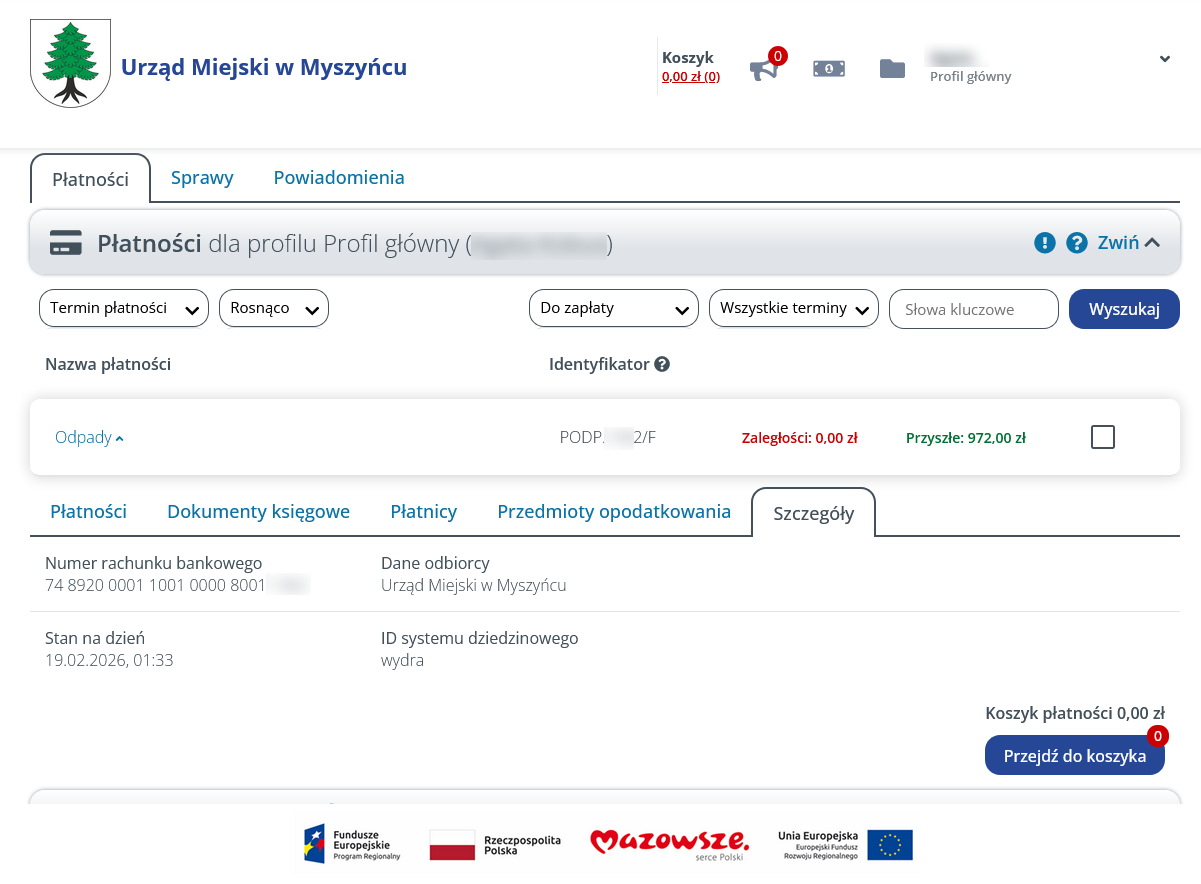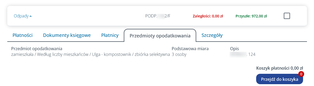 Poniżej przedstawiamy zrzuty ekranu z przykładowego widoku należności na przykładzie opłaty za gospodarowanie odpadami komunalnymi.